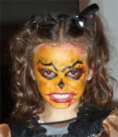 - Il trucco della strega di Halloween è finito. Adesso, la strega deve assumere un’aria feroce per spaventare tutti!