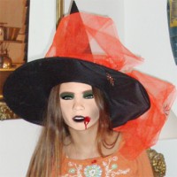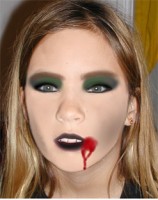 - Disegnare un rigagnolo di “sangue” su un angolo della bocca della strega, con una matita rossa o del rossetto.