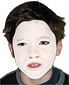 - Mettere un pò di trucco nero sulla spugnetta e picchiettarla leggermente sul viso. Stendere poi il nero con le dita, delicatamente, in modo da “fonderlo” con il bianco.