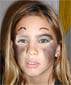 • Con una spugnetta, scurire le guance con del trucco nero.