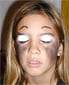 • Stendere del trucco bianco sulle palpebre, ricoprendole completamente. Le palpebre diventeranno gli occhi dello zombie.