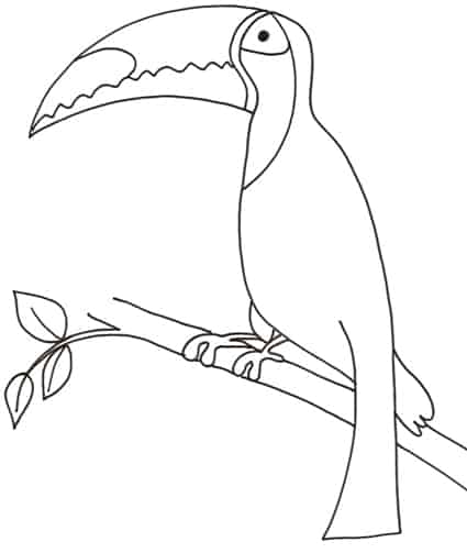 Tucano da colorare Disegno di un bel tucano da stampare e colorare. Il tucano è un simpatico uccello dal piumaggio nero e bianco e con un grandissimo becco giallo, con una punta nera. Cliccare sul disegno per stamparlo: