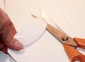 • Con il compasso, tracciare un cercio di 6 cm di raggio sul foglio di carta da lucido e ritagliarlo utilizzando, se possibile, delle forbici dentate.