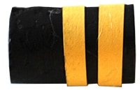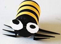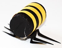 • Incollare le strisce di carta gialla intorno al tappo in modo da creare le righe gialle del corpo dell’ape. Tagliare la carta in eccedenza.