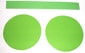 - Nel cartoncino verde, disegnare e ritagliare 2 cerchi di 7 cm di raggio. Ritagliare anche una striscia di 29 cm x 3 cm.
