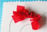 • Infilare la punta di un quadrato nella fessura incisa nel cuore più grande. Continuare, riempiendo tutto il cuore.