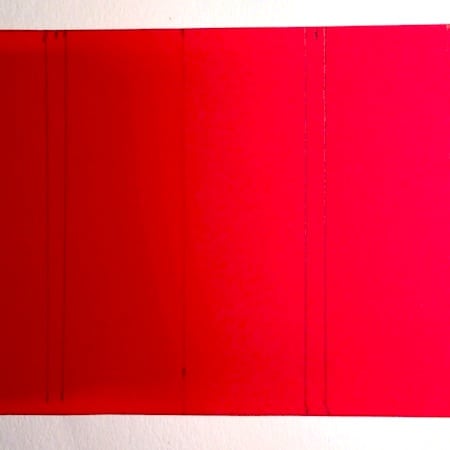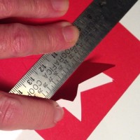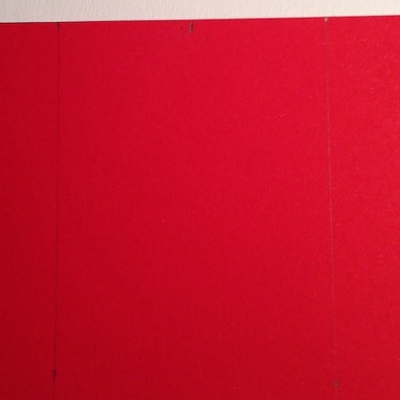 • Tagliare un rettangolo di carta rossa della stessa altezza. La larghezza deve essere la misura della circonferenza del vasetto + 1 cm.