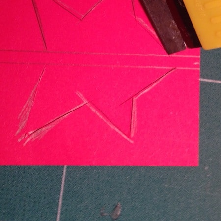 • Con il taglierino, ritagliare il contorno delle sagome disegnate facendo attenzione a mantenere intatto lo spazio centrale di ogni disegno (tra le due linee parallele).