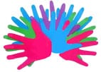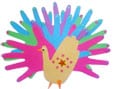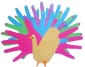 - Incollare le sagome di mani colorate sul foglio di cartoncino bianco, in modo da formare un ventaglio.