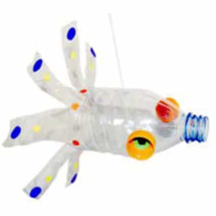 - Non resta che fare un buchino sulla schiena del pesce ed infilarci un filo elastico per appenderlo. Fare un nodo al filo elastico all’interno della bottiglia.