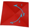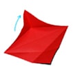 - Alzate la punta superiore di sinistra, spingete i bordi superiori a sinistra verso l’interno e appiattire in modo da fare comparire in triangolo che sia perpendicolare al resto del lavoro. Fate la stessa identica cosa con l’angolo in basso a destra.