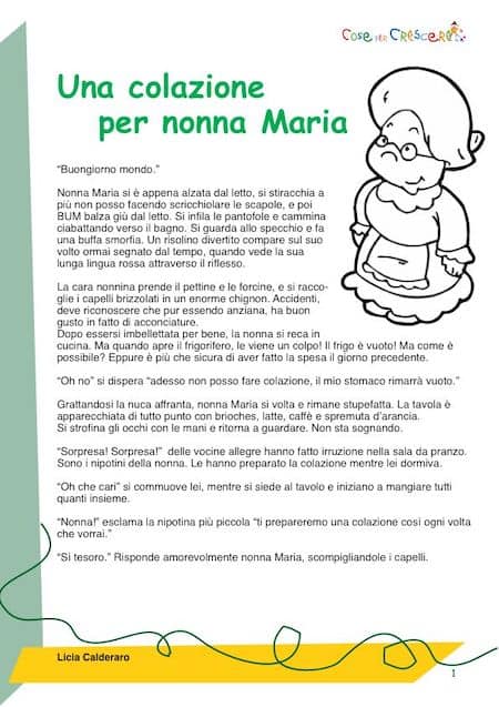 Questa storia per bambini è stata scritta da Licia Calderaro ed è un bellissimo racconto da leggere con i bambini o da raccontare, anche in occasione della Festa dei nonni. Una colazione per nonna Maria è adatta ai bambini della scuola primaria e a quelli più piccoli che frequentano la scuola dell’infanzia, un racconto dedicato a tutti i nonni con una bella morale: Apprezzate ed amate sempre i vostri nonni, sono come dei secondi genitori.