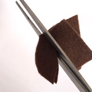 - Piega a metĂ il pezzo di pannolenci e ritaglia le orecchie;