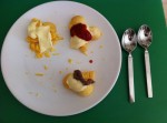 • Aggiungere mezzo cucchiaino di ketchup al secondo mucchietto.