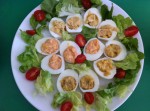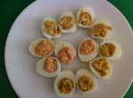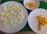 • Aiutandosi con due cucchiaini riempire 4 mezzi tuorli vuoti con ogni composto.