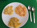 • Aggiungere un cucchiaio di tonno frullato al terzo mucchietto.