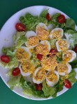 • Decorare il piatto da portata con dell’insalatina condita e dei pomodorini.
