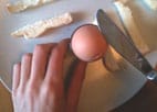 - Con un coltello o un cucchiaino, picchiettate la parte superiore (quella più a punta) e togliete il “coperchio”.