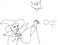 Vampiro con pipistrello da colorare Disegno di un vampiro dall’aspetto inquietante da stampare e colorare, per tutti i bambini che amano il brivido! Cliccare sul disegno per stamparlo: