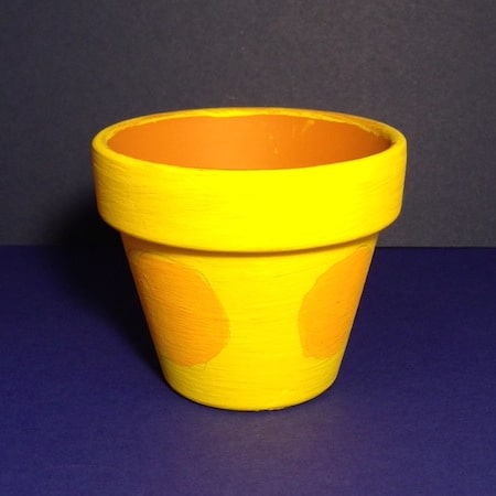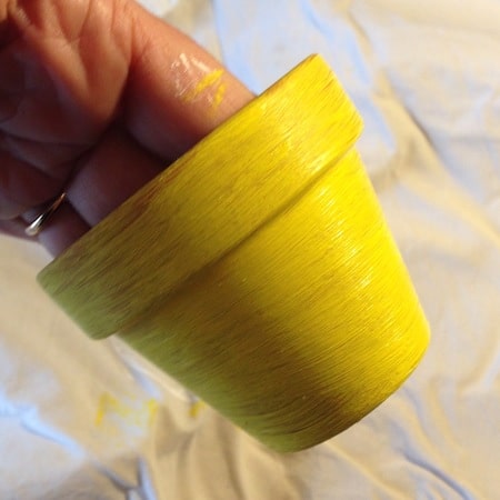 - Dipingere il vasetto di giallo. Lasciare asciugare e dare una seconda mano di colore giallo. Lasciare asciugare.