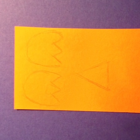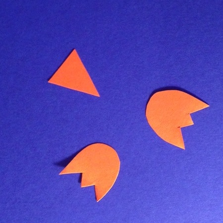 - Disegnare un triangolo sul cartoncino arancione e ritagliarlo.