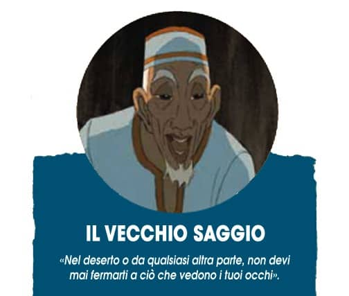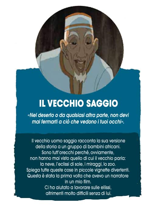 Il vecchio saggio racconta la storia di Zarafa ai bambini ed è la voce narrante del film…