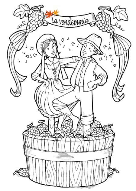Un bel disegno sull’autunno per i bambini della scuola primaria e della scuola dell’infanzia: la pigiatura dell’uva con i piedi durante la vendemmia, il metodo piĂą antico per estrarre il mosto dagli acini e trasformarlo in vino. L’occasione per conoscere da piĂą vicino questa bella tradizione che fa parte della nostra cultura.