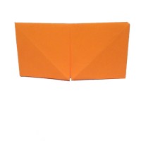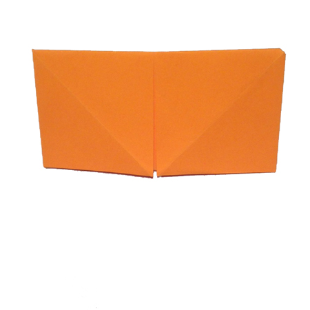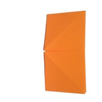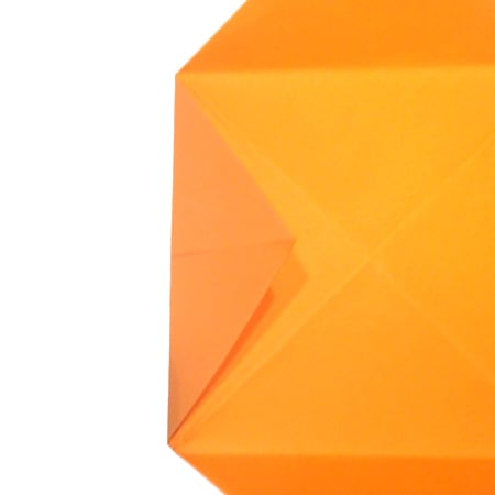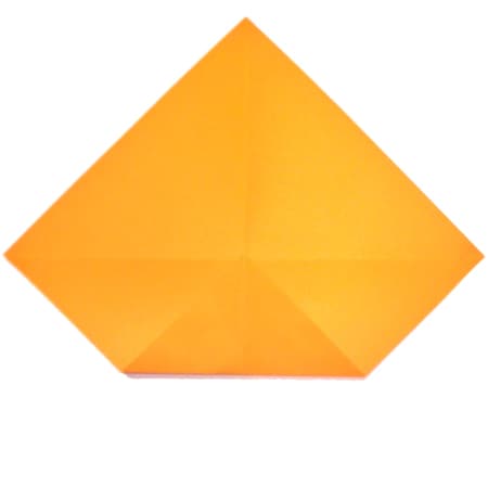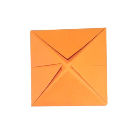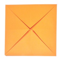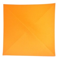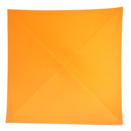 - Piegare il foglio portando il primo angolo sull’angolo opposto, come nell’immagine. Aprire il foglio e ripetere la stessa operazione con i due angoli restanti;