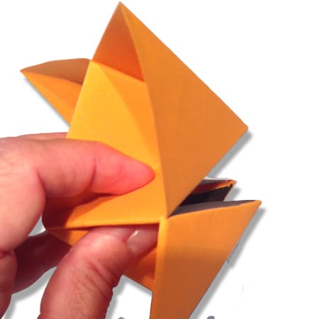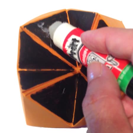 - Incollare tra di loro i triangoli interni del senso verticale, in modo che il lavoro si possa aprire solo in un senso. Lasciare asciugare;